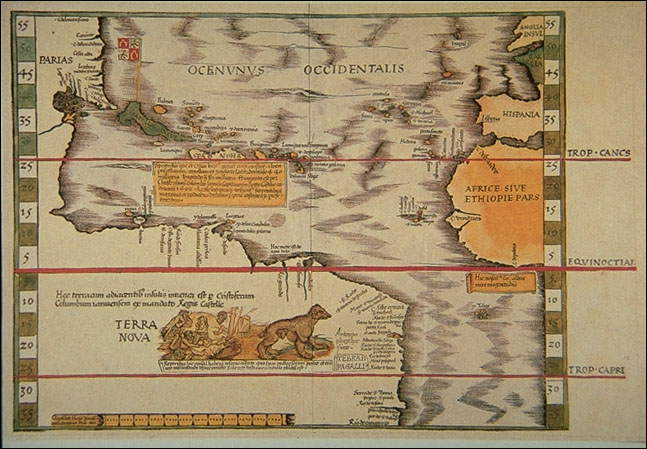 En 1507, el cartógrafo alemán Martín Waldseemüller, publicó Cosmographiae Introductio, en la que se incluyó por primera vez un mapa del Nuevo Mundo y por primera vez con el nombre de América. Creyendo que Vespucio había sido el descubridor, en un párrafo comenta que no está mal que el nuevo continente lleve el nombre de Americu Vespucci. En la historia oficial, se entiende que ésta es el acta de bautizo del nuevo continente. Aunque parece quue el cartógrafo alemán cayó en la cuenta de que las cosas no eran como él las había interpretado y, en 1513, llama al nuevo continente “Tierra nova”. Pero, ya era demasiado tarde, en todos los países se siguió hablando de América.
